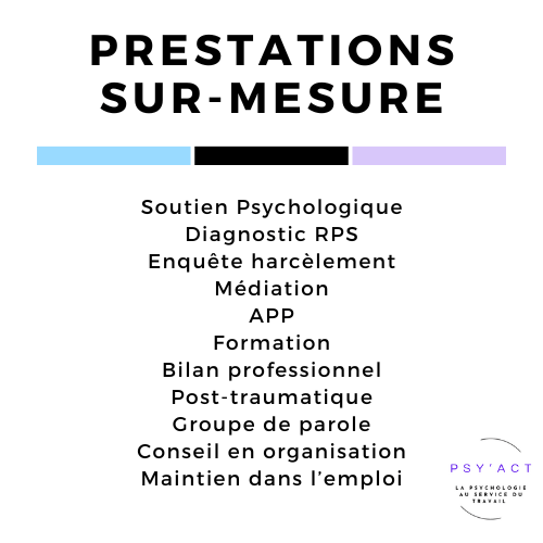 Psy’act peut réaliser des missions de nature et durée variables, en fonction de vos besoins.